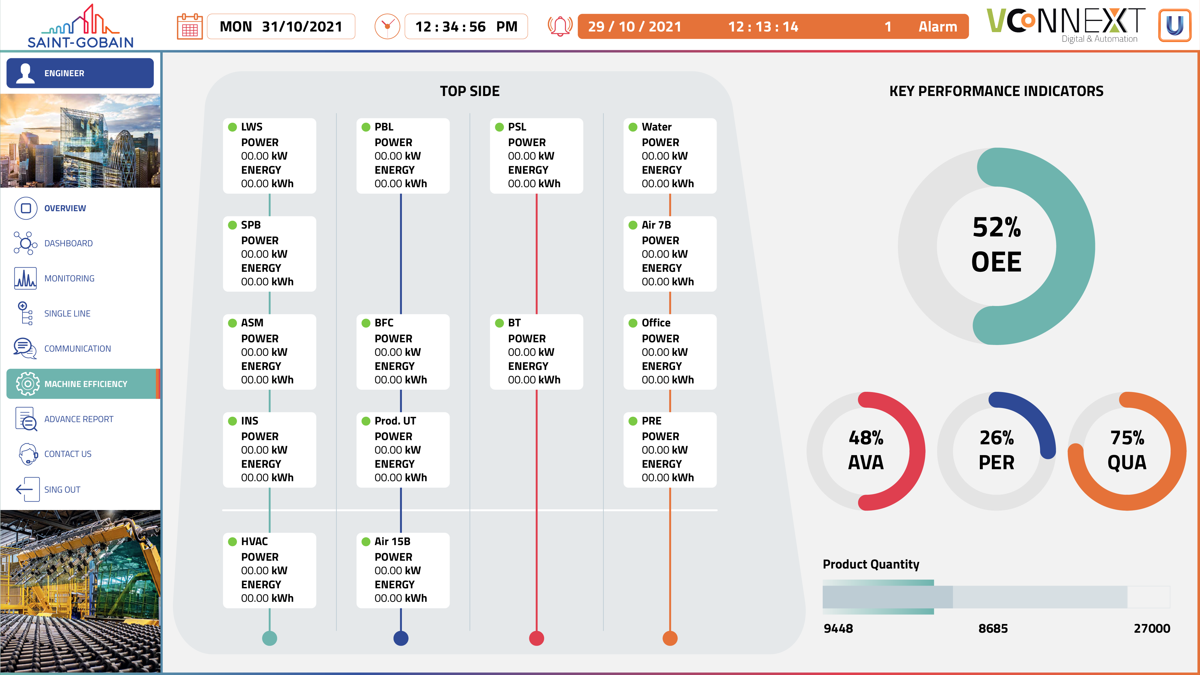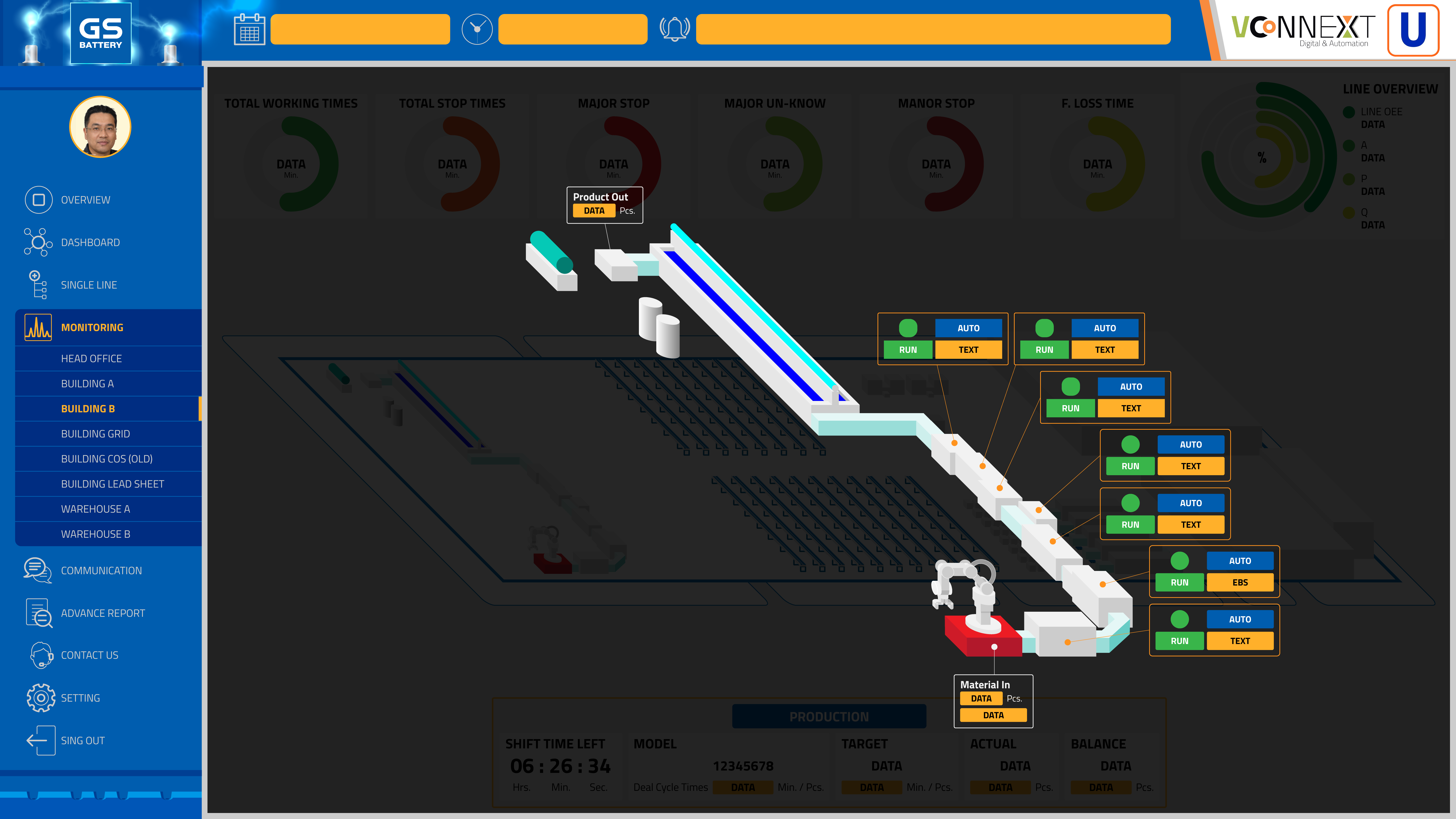 VCONNEXT can shows the working data , status , efficiency of the any machines and help to analyze the information received for calculate the efficiency of the machine (Overall Equipment Effectiveness : OEE) and help to calculate the KPI.