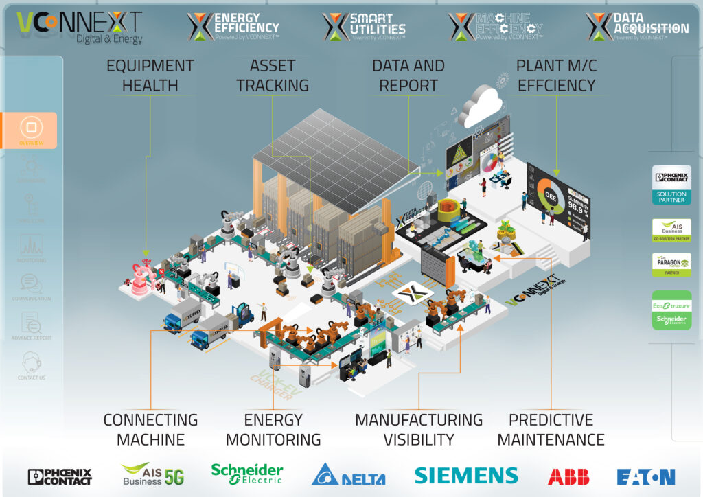 VCONNEXT can able to record about machines data , production information , etc. and display results in various formats such as dashboard , trend , chart , etc. It can set various conditions as needed. It can also help to report in the desired format such as Billing Report , Query Report , etc.